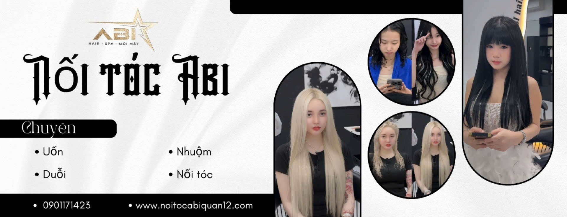 Chào mừng bạn đến với Nối Tóc Abi. Là một trong những salon tóc đẹp và uy tín ở Gò Vấp. Chúng tôi chuyên cung cấp dịch vụ uốn, duỗi, nhuộm. Ngoài làm hoá chất Abi còn mang đến cho bạn mái tóc dài đẹp, không cộm cấn bằng những công nghệ nối tóc tân tiến. Với nhiều năm trong nghề và đội ngũ nhân viên chuyên nghiệp. Abi hứa hẹn mang đến cho khách hàng sự hài lòng từ cách phục vụ cho đến dịch vụ. Liên hệ ngay cho Abi để được tư vấn miễn phí những kiểu tóc, màu tóc phù hợp nhất